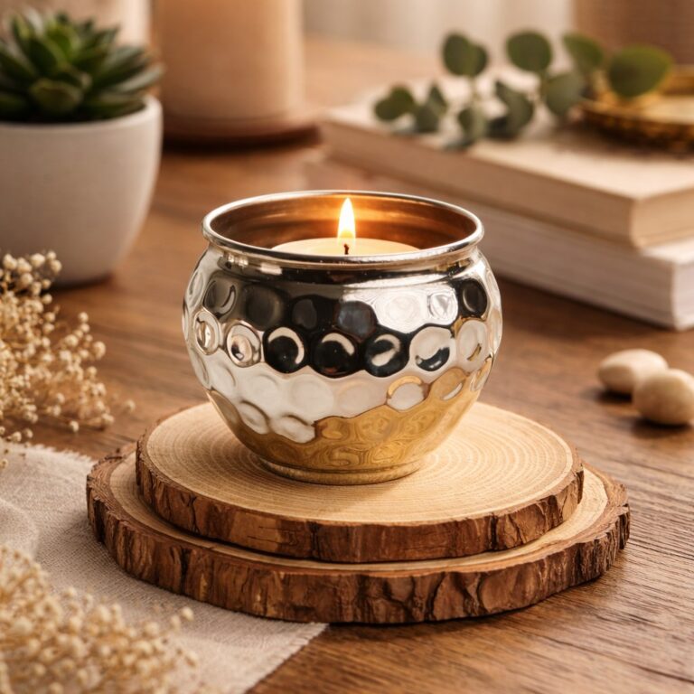 اصيص زرع وحامل شموع نحاس تصميم خليه نحل – باللون الفضي