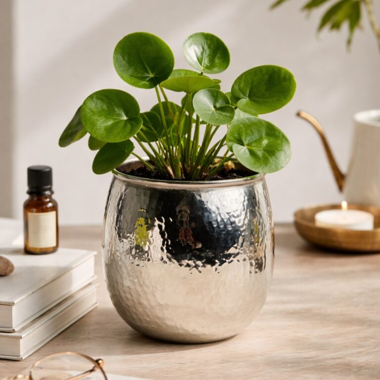 اصيص زرع بتصميم ديكوري مزخرف _ باللون الفضي