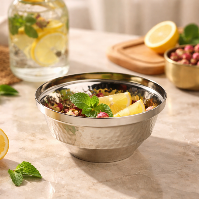 وعاء نحاسي بتصميم مزخرف متعدد الاستخدامات _ باللون الفضي