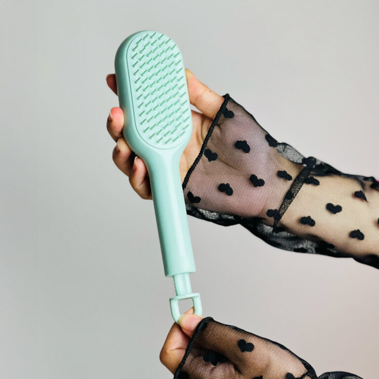 فرشة شعر لفك التشابك ذاتية التنظيف بتصميم قابل للسحب