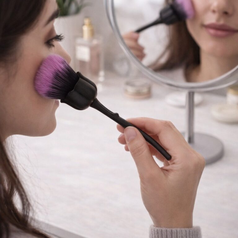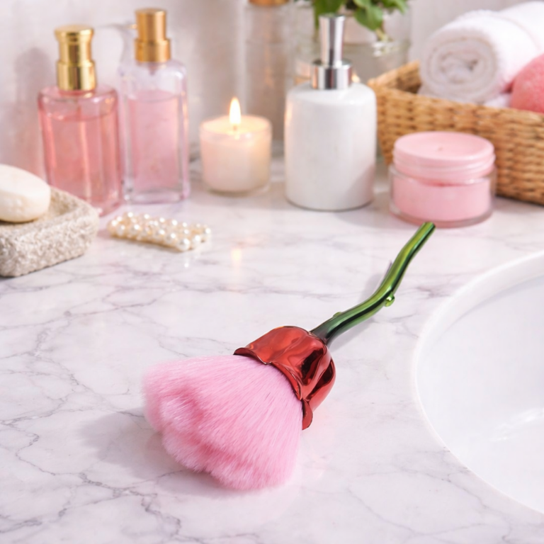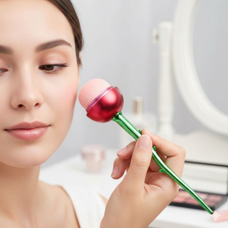 فرشة مكياج ناعمة ولطيفة علي البشرة شكل وردة مجسم