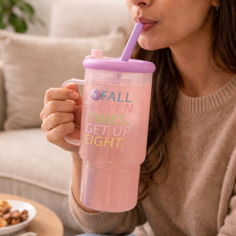مج اكليريك 400 مللي بشاليموه مناسب للمشروبات المثلجة مزين باشكال كرتونية