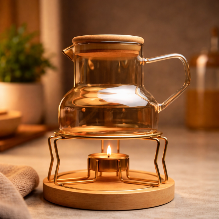 براد بايركس حراري 600 ملي بغطاء خشبي مع استاند معدن _ باللون العسلي