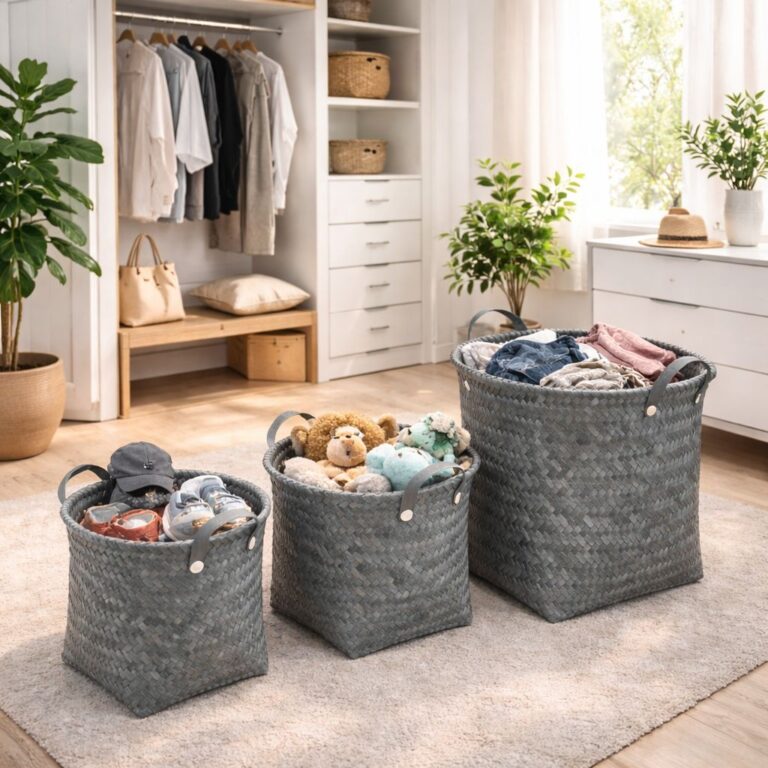 طقم باسكت تخزين من الرتان باللون الرمادي – 3 قطع