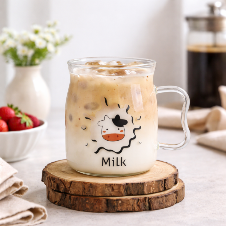 مج زجاج 650 ملي بيد و شاليموه لشرب العصائر والمشروبات الساخنة