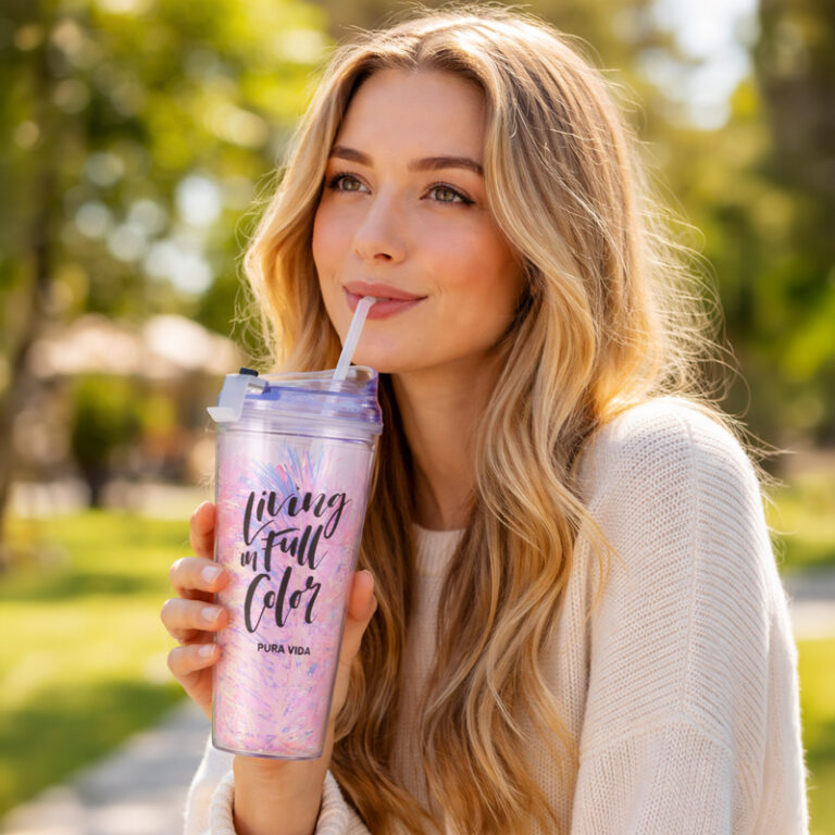 كوباية دابل مزين بالجليتر مع شاليموه وغطاء 600 مللي